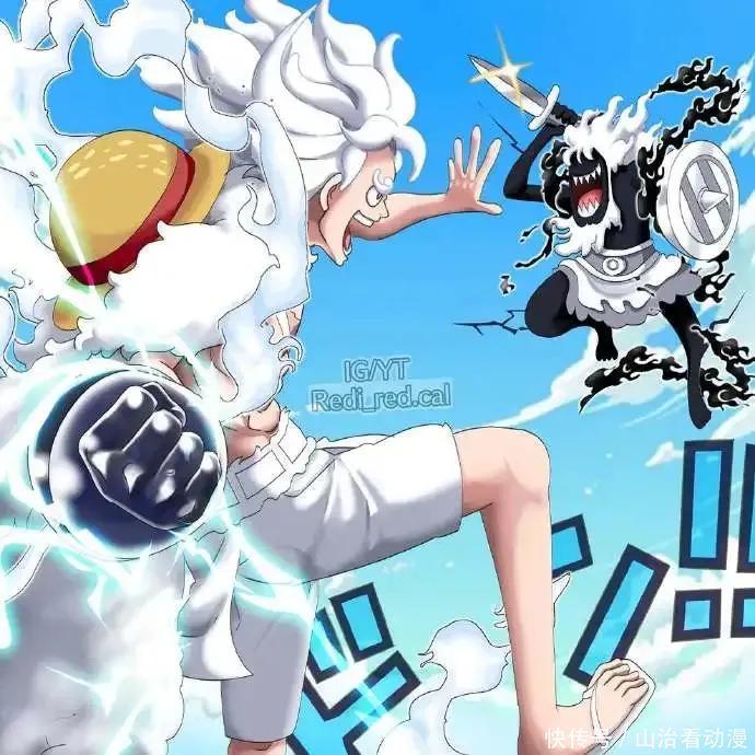 路飞和海尔丁等人正赶回去,他们就遇到了一头巨型怪物,这家伙就是黑暗尼卡,麒麟戈姆圣放出来的怪物。黑暗尼卡看起来很强,路飞直接开启了五档尼卡形态,和黑暗尼卡形成对比,两个都是尼卡,黑暗尼卡的力量并不是很强,毕竟不是真正的尼卡,路飞使用了巨型拳头,一个拳头就击飞了黑暗尼卡,不过黑暗尼卡并没有死亡。